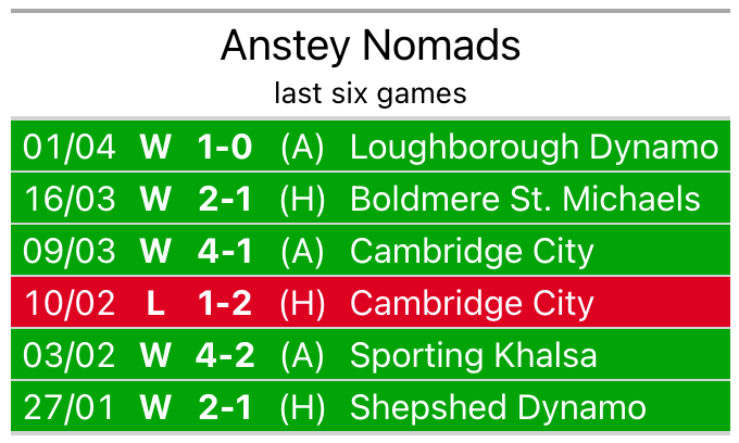 They face an Anstey Nomads side who picked up a win in their last match, a 1-0 victory against Loughborough Dynamo, and who sit third in the table.