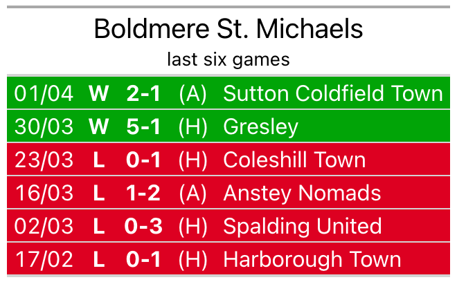 Their last meeting was on November 11, when Boldmere St. Michaels won 4-0 at home.