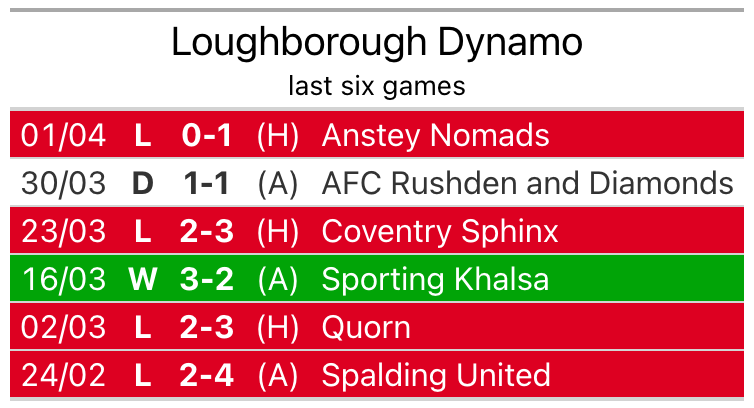 Their last meeting was on November 11, when Loughborough Dynamo won 2-0 away.