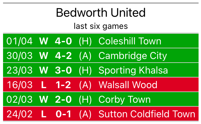 They face a Bedworth side who picked up a win in their last match, a 4-0 victory against Coleshill Town, and who sit 11th in the table.