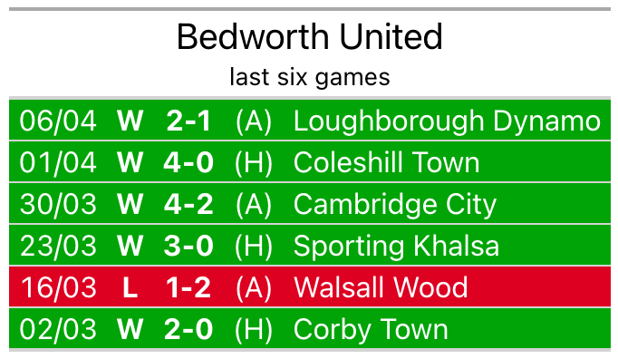 With five wins and one loss over that period, Bedworth’s form is much better – they have taken 15 points from 18, compared to Town’s four.
