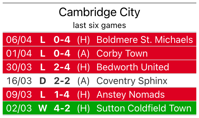 Cambridge lost 4-0 against Boldmere St. Michaels last time out, also on April 6.