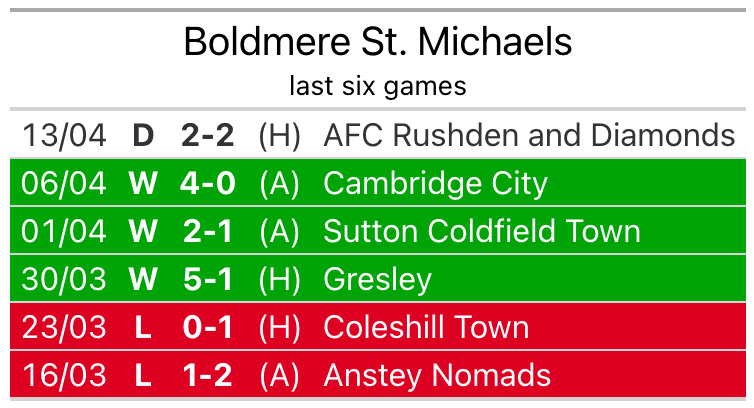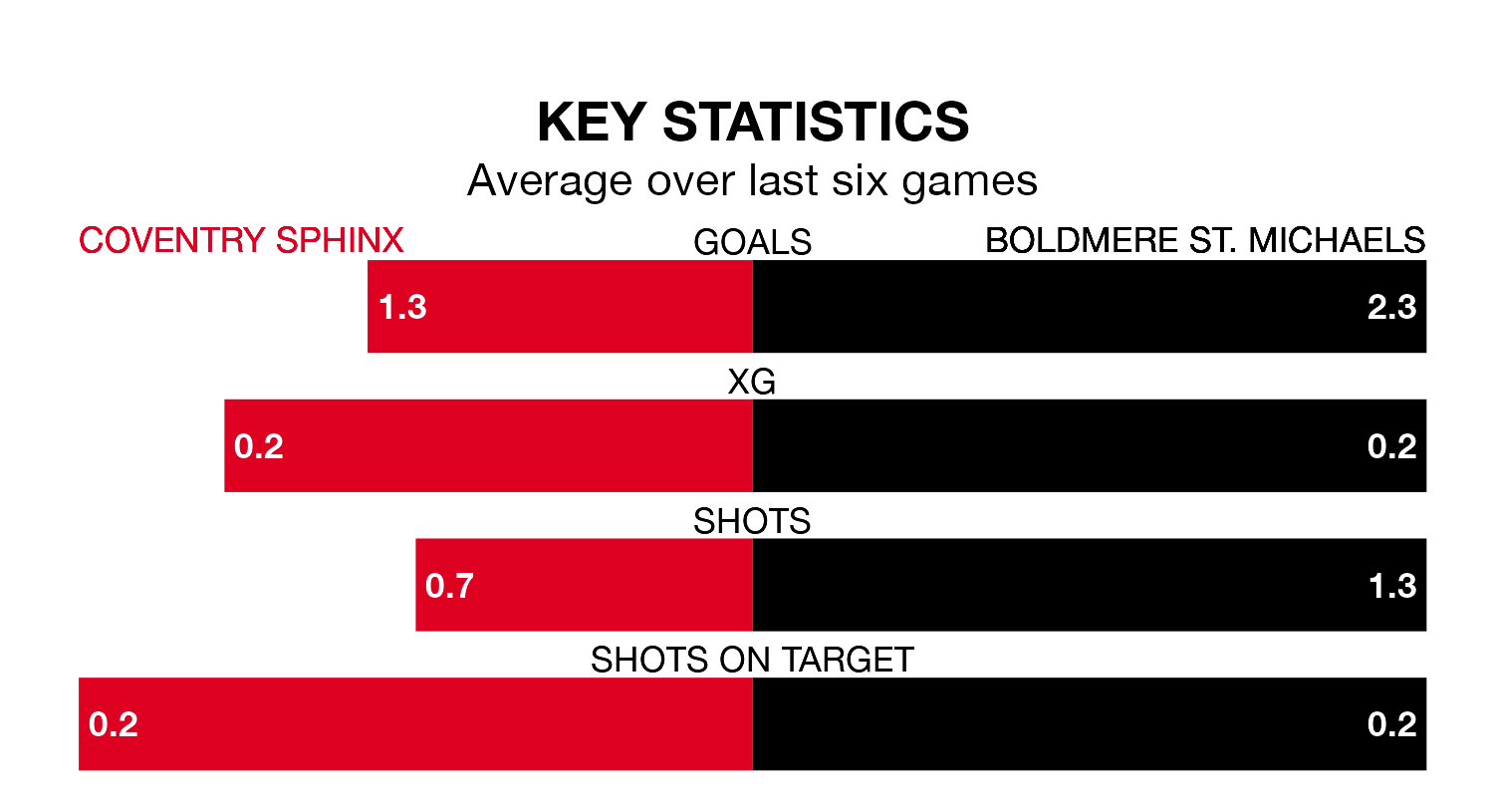 With three wins and a draw over that period, Boldmere St. Michaels’s form is better – they have taken 10 points from 18, compared to the home team’s five.