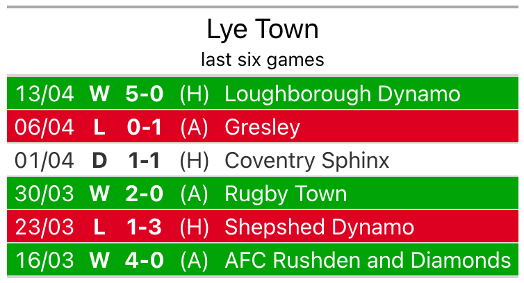 With three wins and a draw over that period, Lye’s form is slightly better – they have taken 10 points from 18, compared to Quorn’s nine.