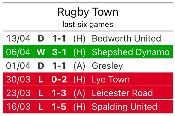 Rugby, meanwhile, drew their last match, 1-1 against Bedworth United.