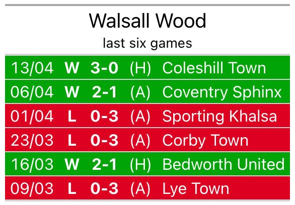 Walsall Wood are nine places ahead of Town in ninth, with 15 wins and six draws putting them on 51 points.