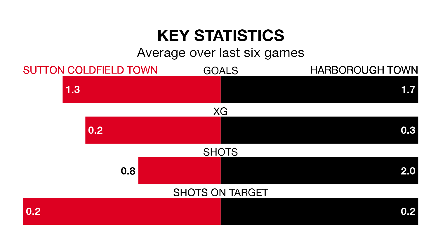 Sutton Coldfield, meanwhile, are below average scorers, with 1.5 goals per game, compared to a league average of 1.6. They have conceded 1.6 goals per game.