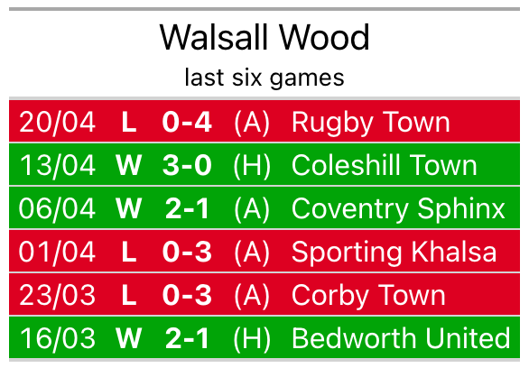 With two wins and two draws over that period, the away side’s form is slightly worse – they have taken eight points from 18, compared to Walsall Wood’s nine.