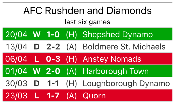 Struggling AFC Rushden and Diamonds face Walsall Wood away on Saturday looking to build on a win in their last league outing.