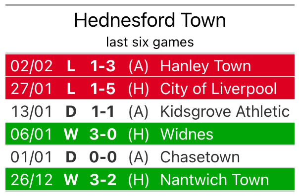 Hednesford are 19th in the table after 27 games, of which they have won five and drawn eight, earning 23 points.