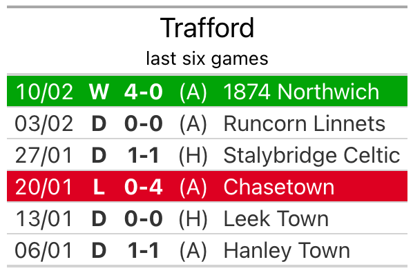 After securing all three points with a 4-0 victory over 1874 Northwich on February 10, Trafford sit 17th in the Northern Premier League Division One West.