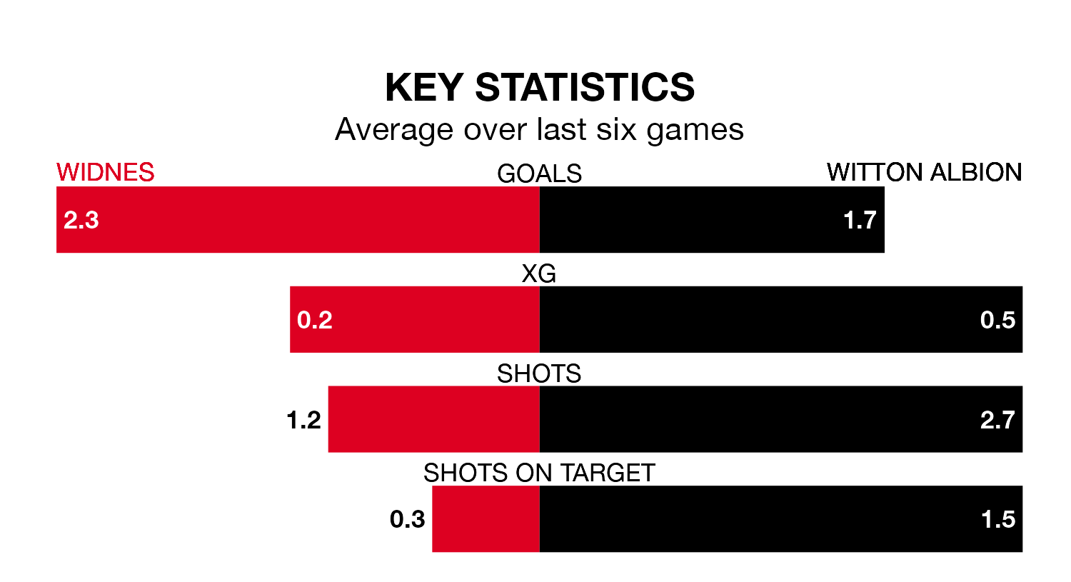 Widnes are also above average scorers, with 1.5 goals per game, compared to a league average of 1.4. They have conceded 1.0 goal per game.