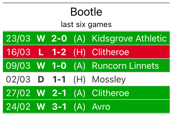 Their last meeting was on September 2, when Bootle won 1-0 away.