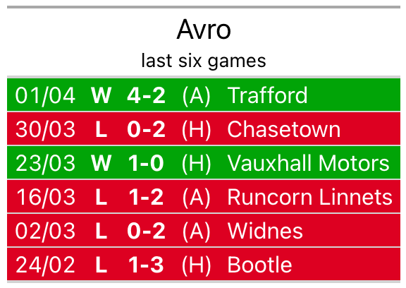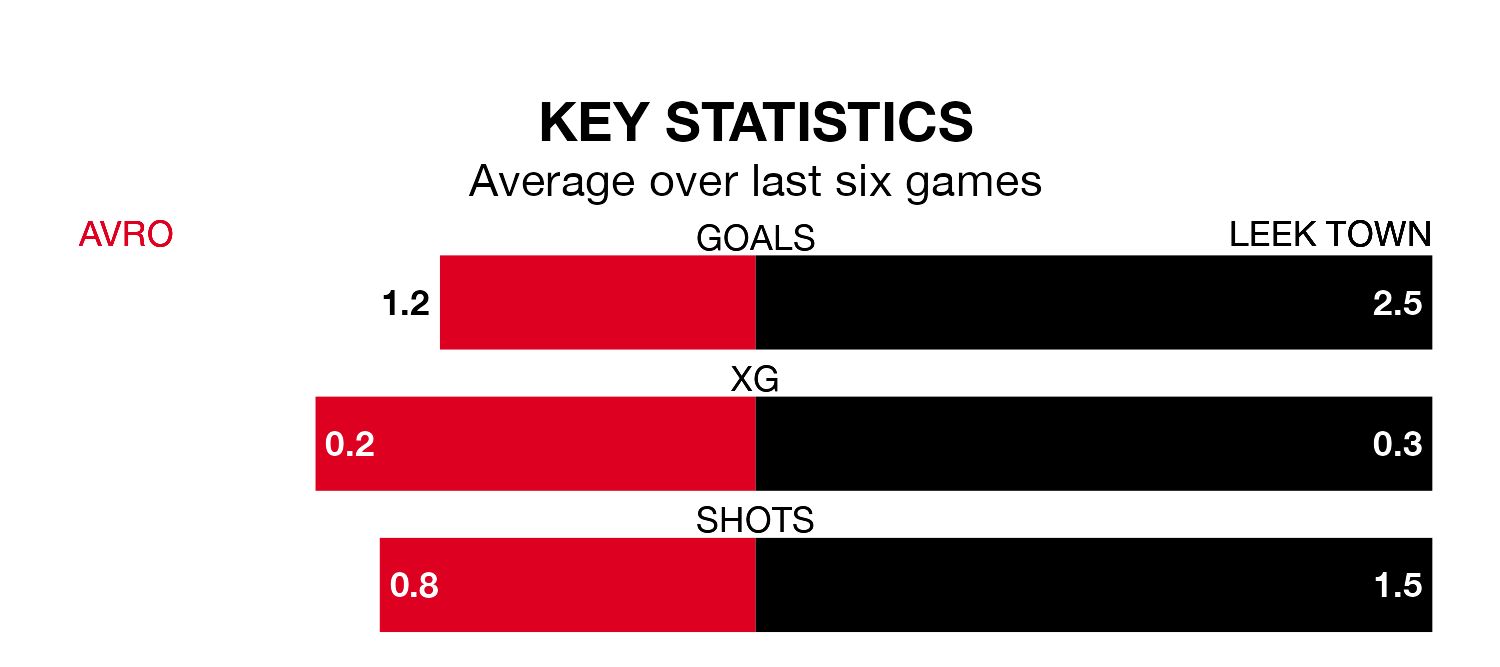 With five wins and a draw over that period, the visitors’ form is much better – they have taken 16 points from 18, compared to Avro’s six.