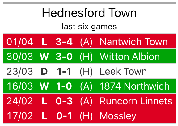 Hednesford are 17 places behind the home side in 19th, with seven wins and nine draws putting them on 30 points.