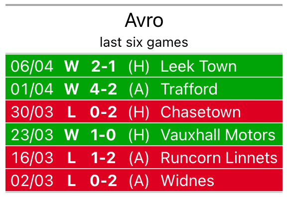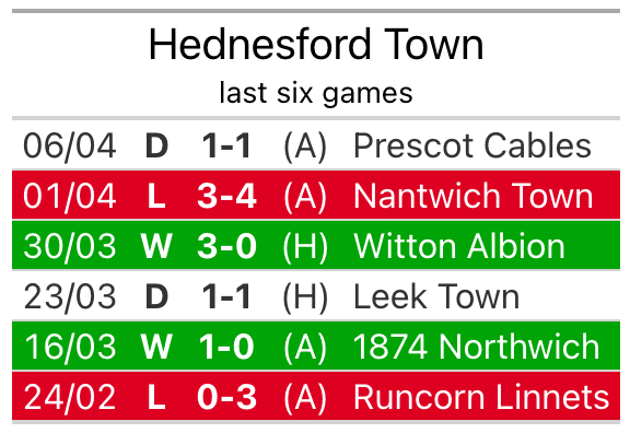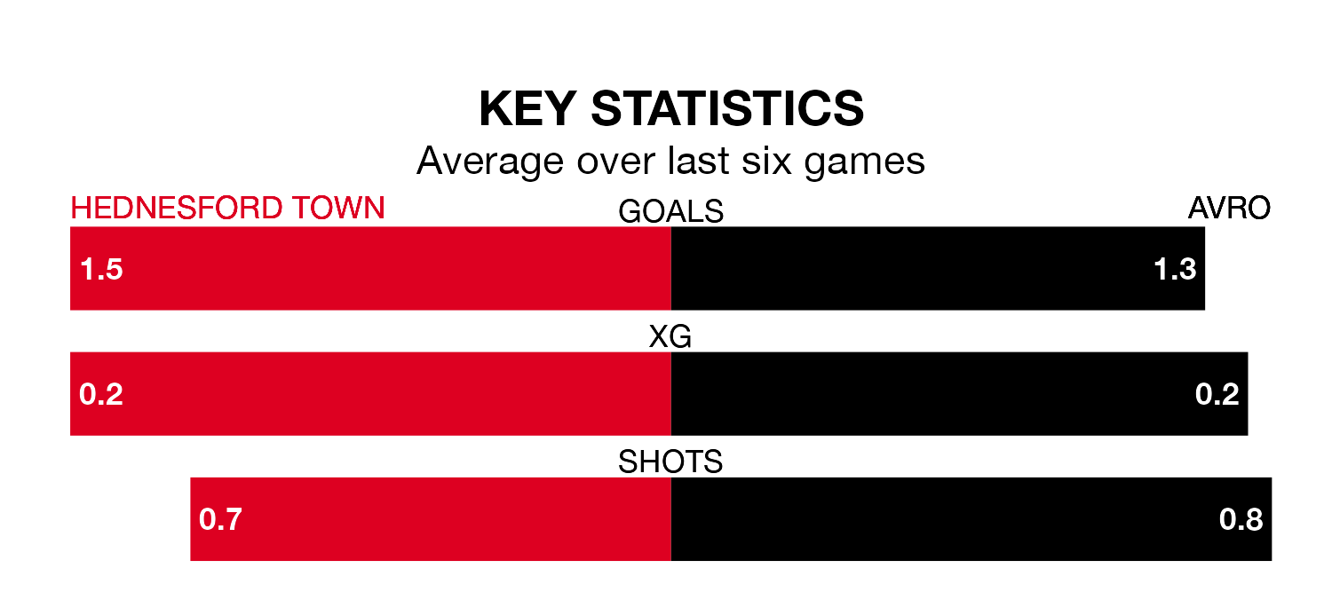 With three wins and three losses over that period, Avro’s form is slightly better – they have taken nine points from 18, compared to Hednesford’s eight.