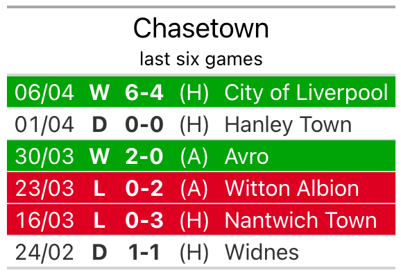 Chasetown are one place ahead of the home side in 11th, with 13 wins and eight draws putting them on the same number of points.