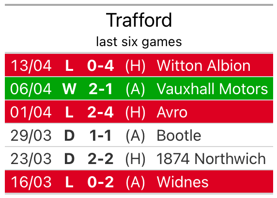 Trafford lost 4-0 against Witton Albion last time out, also on April 13.
