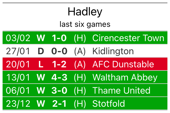 After securing all three points with a 1-0 victory over Cirencester Town on February 3, Hadley sit 16th in the Southern League Division One Central.