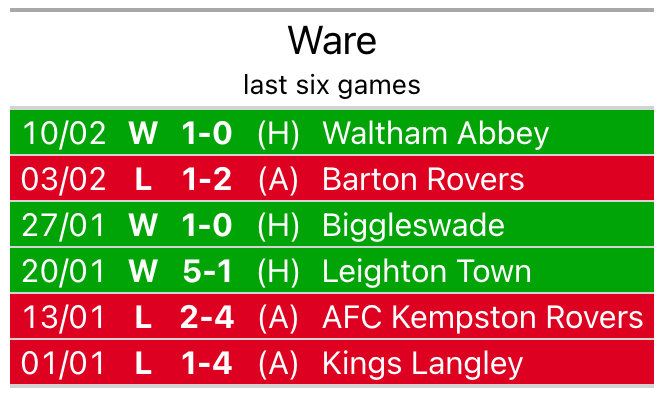 They travel to play a Ware side sixth in the standings, who also won their last match, 1-0 against Waltham Abbey, on February 10.