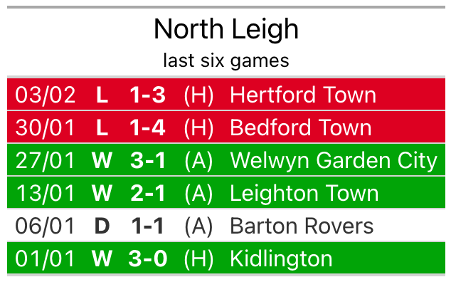 North Leigh, who sit second in the league after 23 games, fell to a 3-1 home defeat to Hertford Town on February 3.