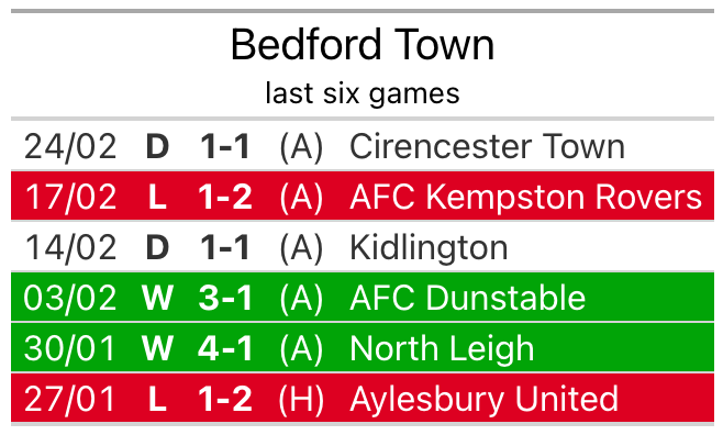 Bedford, who sit top of the league after 25 games, fell to a 1-1 away defeat to Cirencester Town on Saturday.