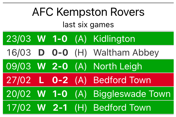 With a win and two draws over that period, Town’s form is much worse – they have taken five points from 18, compared to Kempston Rovers’ 13.