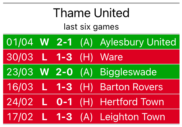 With 38 goals in 30 games so far this season, Thame are the league’s third-lowest scorers with 1.3 goals per game. And they are conceding more than average, letting in 60 goals at a rate of 2.0 per game.