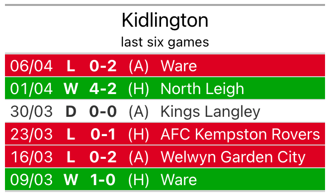 Kidlington’s last match was on April 6, a 2-0 loss against Ware.