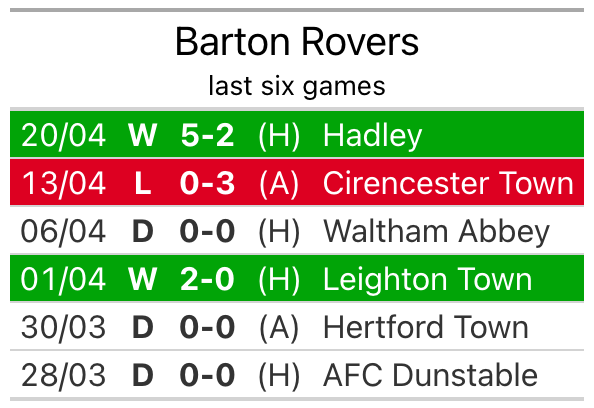 They face a Barton side who have scored 48 in 30 matches, but conceded only 47 goals, putting them joint-fourth among the league’s tightest defences – only Biggleswade Town, Bedford Town and Cirencester Town have conceded fewer goals.
