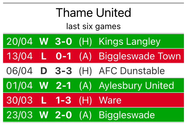 After securing all three points with a 3-0 victory over Kings Langley on April 20, Thame sit 18th in the Southern League Division One Central.