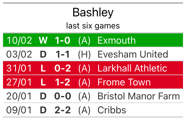 Bashley are in mixed form in the Southern League Division One South, with two wins and two draws from their last six games.