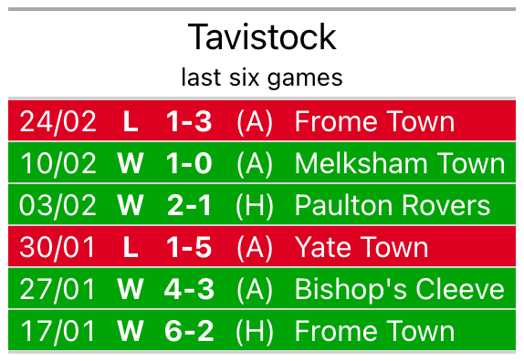 Tavistock’s last match was on Saturday, a 3-1 loss against Frome Town.