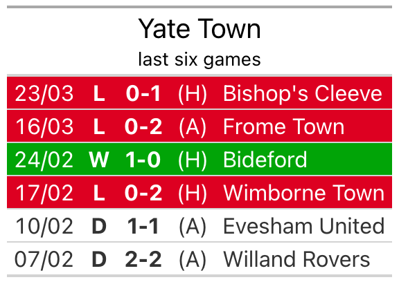 Yate also lost, 1-0 at home against Bishop’s Cleeve.