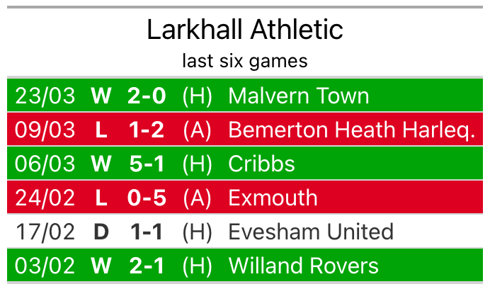 Their last meeting was on January 31, when Larkhall won 2-0 at home.