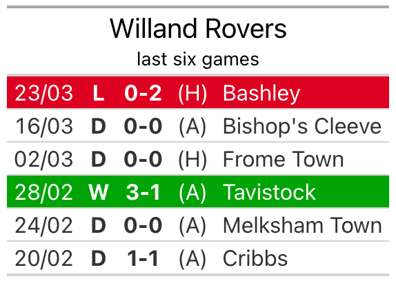 With a win and four draws over that period, Willand’s form is much worse – they have taken seven points from 18, compared to the home team’s 14.