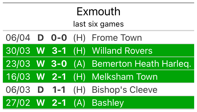 Exmouth drew 0-0 with Frome Town last time out, also on April 6.