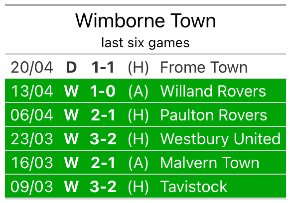Wimborne drew 1-1 with Frome Town last time out, also on April 20.