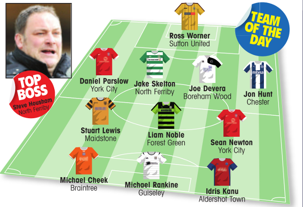 Villagers defender Jake Skelton also earned a spot in our team after Ferriby’s 4-2 win on the road and he was joined in our back four by York City’s Daniel Parslow, Joe Devera of Boreham Wood and Chester’s Jon Hunt.