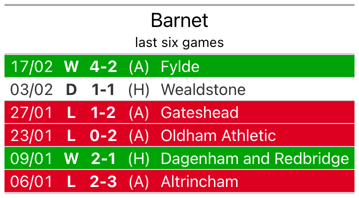 Their last meeting was on September 19, when Barnet won 2-1 at home.