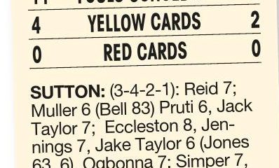 By Tony Dolbear SUTTON UTD 4 Harris 32, 50, Simper 46, Jack Taylor 90+8 GATESHEAD 2 Pennant 5, Telford 54 SUTTON...
