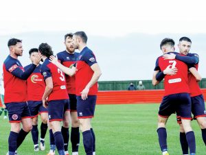 DIV 1 EAST By Steve Penny DELIGHT: Adam Boyes of Redcar Athletic celebrates with his team-mates PICTURE: Shutterpress REDCAR ATH 3...