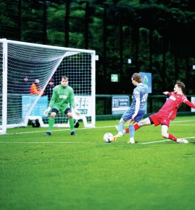 UNITED COUNTIES LEAGUE By Robin Jones BEST FOOT FORWARD: Sherwood’s William Norcross scores their first goal PICTURE: Tom Flint Sherwood Colliery...