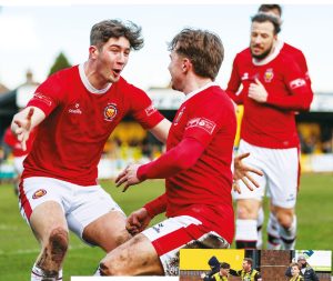 Leaders’ tough time against rivals By Will Jeffries SWEETLY STRUCK: FC United players celebrate after Jay Fitzmartin’s opener PICTURE:Lewis McKenna LIAM...