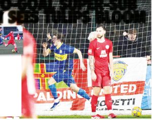 QUORN 3 SPALDING UNITED 4 By James Kendrick JUMPING JACK: Spalding’s Jack Roberts celebrates after scoring in stoppage time to win...