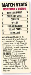 By Derek Quinn MORECAMBE 0 BOSTON UTD 3 John-Lewis 24, 42, Hill 31 BOSTON United boss Graham Coughlan was a happy...