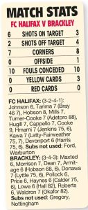 By Kelly Gilchrist FC HALIFAX T 2 Kawa 47, Bray 90+3 BRACKLEY TN 0 ADAM LAKELAND hailed the engine on his...