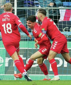 Jimmy’s boys rock Rovers to reach summit By Neil Harvey FLASH GORDON: Kyron Gordon, left, leads the celebrations after his goal...