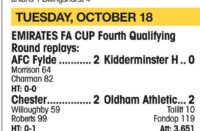 SUNDAY, MARCH 17 NATIONAL LGE Oxford City 0 ............ FC Halifax Tn..........2 Harker 22, Oluwabori 24 HT: 0-2 Att:1,312 MONDAY, MARCH...