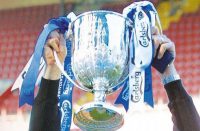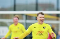 UNITED COUNTIES By Robin Jones PARTY TIME: Town’s James Ireland wheels away to celebrate after firing home his side’s second in...